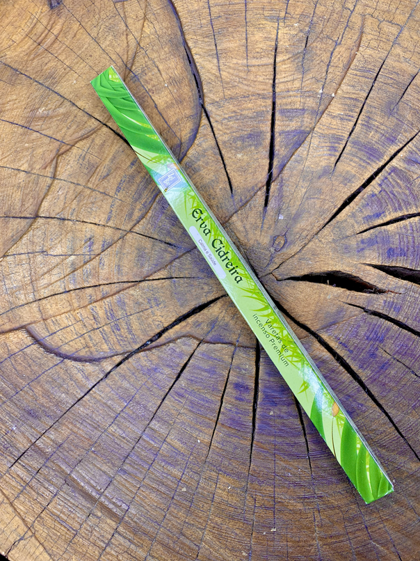 Caixinha de Alta Qualidade: Contém varetas de incenso de erva cidreira cuidadosamente elaboradas.